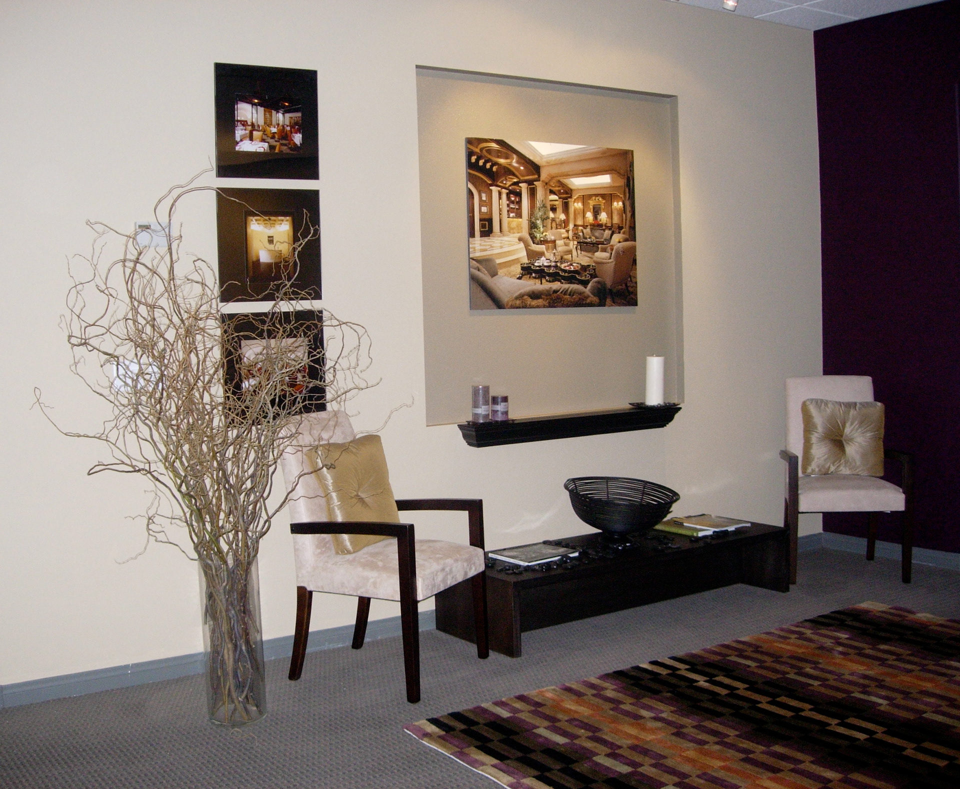 Remodel of lobby, sound rooms, hallway, and private offices. De-clutter, new paint colors, framing of artwork, grouping and deleting of many accessories, upgrade furniture. Worked with audio engineers to learn appropriate room sizes, types, and functions of furniture, wire management, and baffle locations.